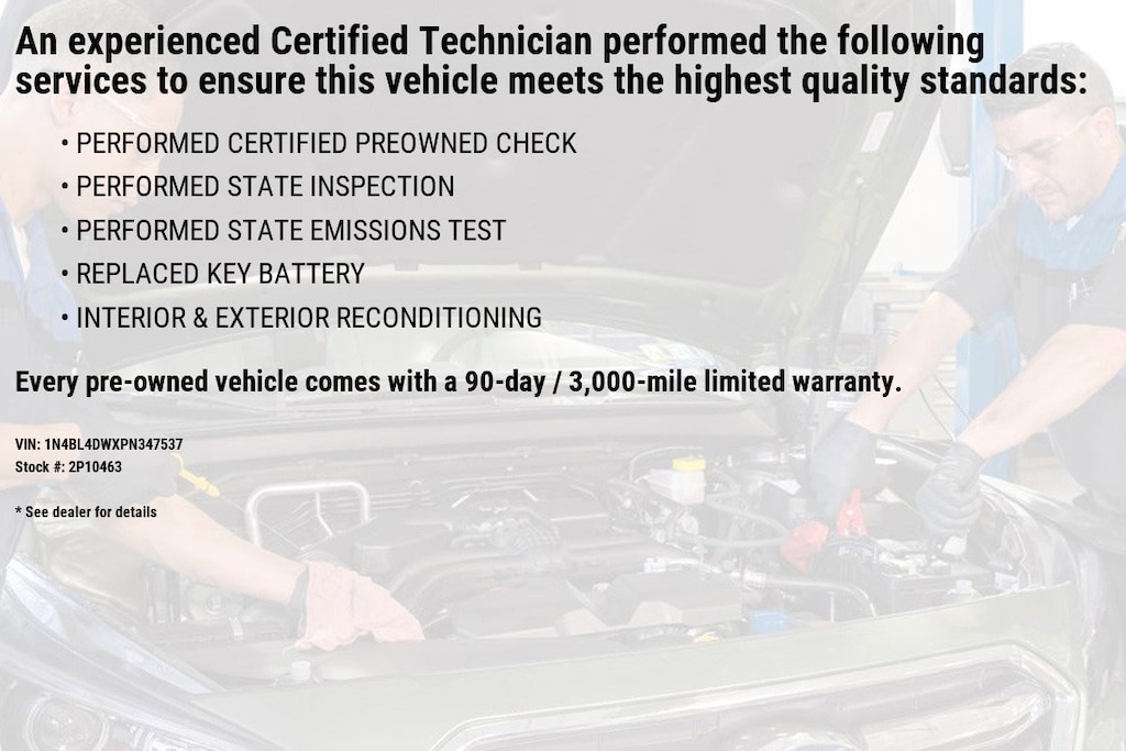 Odometer is 14355 miles below market average! CVT with Xtronic 2.5L 4-Cylinder DOHC 16V 17" Machined Alloy Wheels, 4-Wheel Disc Brakes, 6 Speakers, ABS brakes, Air Conditioning, Alloy wheels, AM/FM radio: SiriusXM, Auto High-beam Headlights, Blind Spot Warning, Body-Colored Splash Guards, Brake assist, Bumpers: body-color, Chrome Bumper Protector, Cloth Seat Trim, Delay-off headlights, Driver door bin, Driver vanity mirror, Dual front impact airbags, Dual front side impact airbags, Electronic Stability Control, Floor Mats/Trunk Mat/Hideaway Net, Four wheel independent suspension, Front anti-roll bar, Front Bucket Seats, Front Center Armrest, Front reading lights, Fully automatic headlights, Illuminated entry, Knee airbag, Low tire pressure warning, NissanConnect featuring Apple CarPlay and Android Auto, Occupant sensing airbag, Outside temperature display, Overhead airbag, Overhead console, Panic alarm, Passenger door bin, Passenger vanity mirror, Power door mirrors, Power driver seat, Power steering, Power windows, Radio data system, Radio: AM/FM Audio System, Rear anti-roll bar, Rear Parking Sensors, Rear reading lights, Rear seat center armrest, Rear side impact airbag, Rear window defroster, Remote keyless entry, Security system, Speed control, Speed-sensing steering, Speed-Sensitive Wipers, Split folding rear seat, Steering wheel mounted audio controls, Tachometer, Telescoping steering wheel, Tilt steering wheel, Traction control, Trip computer, Trunk Organizer Tray, Variably intermittent wipers.