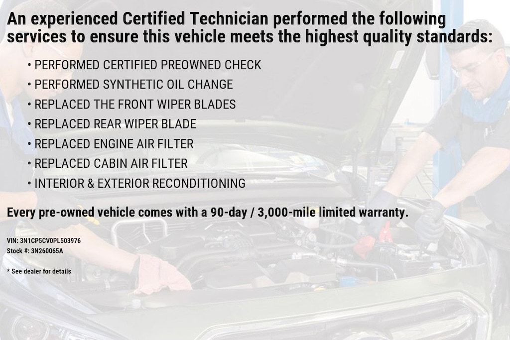 The design of this vehicle clearly emphasizes dynamic style and agility! This vehicle has achieved Certified Pre-Owned status, by passing Nissan's comprehensive certification process, including a comprehensive 156 point inspection! All of the following features are included: an outside temperature display, telescoping steering wheel, and a split folding rear seat. Smooth gearshifts are achieved thanks to the efficient 4 cylinder engine, providing a spirited, yet composed ride and drive.