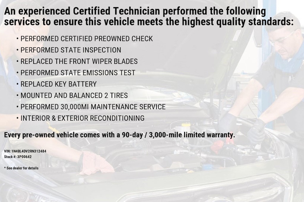 Odometer is 3687 miles below market average! CVT with Xtronic 2.5L 4-Cylinder DOHC 16V 17" Alloy Wheels, 4-Wheel Disc Brakes, 6 Speakers, ABS brakes, Air Conditioning, Alloy wheels, AM/FM radio: SiriusXM, Auto High-beam Headlights, Blind Spot Warning, Brake assist, Bumpers: body-color, Cloth Seat Trim, Delay-off headlights, Driver door bin, Driver vanity mirror, Dual front impact airbags, Dual front side impact airbags, Electronic Stability Control, Floor Mats/Trunk Mat/Hideaway Net, Four wheel independent suspension, Front anti-roll bar, Front Bucket Seats, Front Center Armrest, Front reading lights, Fully automatic headlights, Illuminated entry, Knee airbag, Low tire pressure warning, NissanConnect featuring Apple CarPlay, Occupant sensing airbag, Outside temperature display, Overhead airbag, Overhead console, Panic alarm, Passenger door bin, Passenger vanity mirror, Power door mirrors, Power driver seat, Power steering, Power windows, Radio data system, Radio: AM/FM Audio System, Rear anti-roll bar, Rear Parking Sensors, Rear reading lights, Rear seat center armrest, Rear side impact airbag, Rear window defroster, Remote keyless entry, Security system, Speed control, Speed-sensing steering, Speed-Sensitive Wipers, Split folding rear seat, Steering wheel mounted audio controls, Tachometer, Telescoping steering wheel, Tilt steering wheel, Traction control, Trip computer, Variably intermittent wipers.