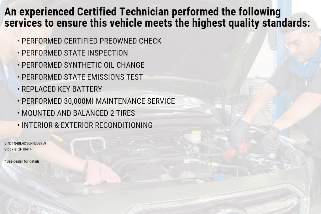 * 7 Year/100,000 Mile Limited Warranty, 24/7 Hour Roadside Assistance, Carfax Vehicle History Report, Plus 1 Year Pre-Paid Maintenance Included. Gas Powered Nissan Models Only. (for Nissan Certified program), 12-Months/12,000 Mile Limited Warranty, 24/7 Hour Roadside Assistance, Carfax Vehicle History Report, Plus 1 Complimentary Service Visit During the First Year of Ownership or First 15,000 Miles, Whichever Comes First. (for Certified Select program), 7-Year/100,000 Mile Limited Warranty, 1 Year Prepaid Maintenance Included in the First Year of Ownership or 15,000 Miles, Whichever Comes First. 100% Electric Nissan Models Only. (for EV Certified program)
