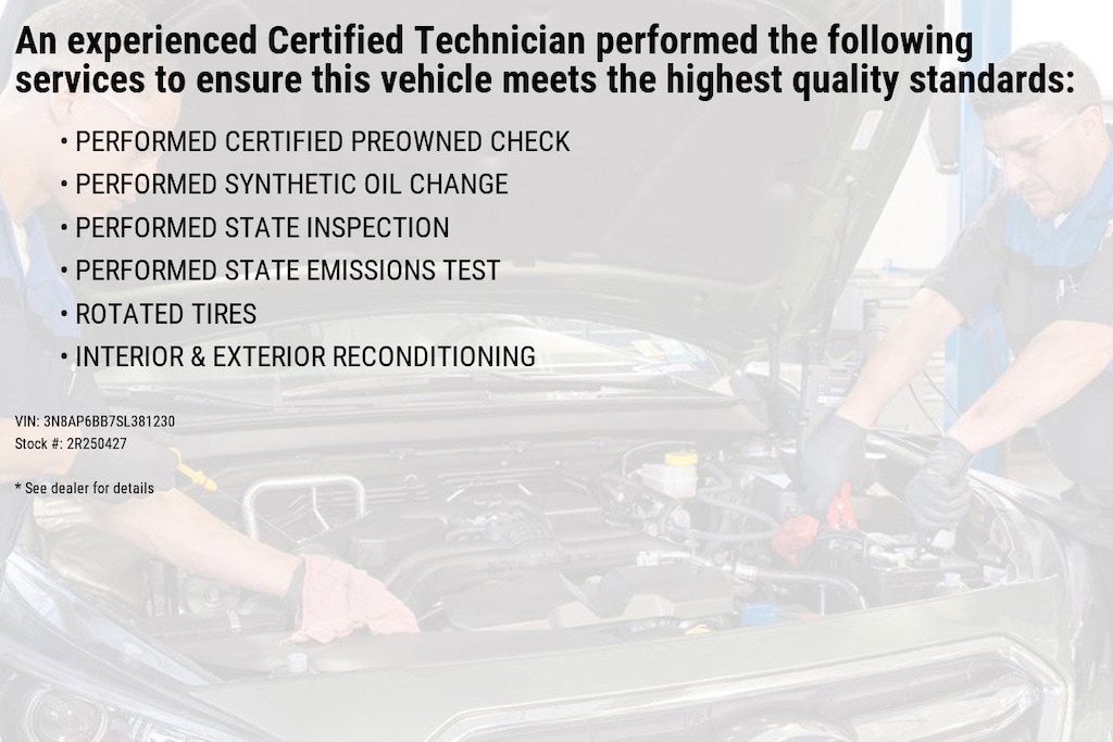 * 7 Year/100,000 Mile Limited Warranty, 24/7 Hour Roadside Assistance, Carfax Vehicle History Report, Plus 1 Year Pre-Paid Maintenance Included. Gas Powered Nissan Models Only. (for Nissan Certified program), 12-Months/12,000 Mile Limited Warranty, 24/7 Hour Roadside Assistance, Carfax Vehicle History Report, Plus 1 Complimentary Service Visit During the First Year of Ownership or First 15,000 Miles, Whichever Comes First. (for Certified Select program), 7-Year/100,000 Mile Limited Warranty, 1 Year Prepaid Maintenance Included in the First Year of Ownership or 15,000 Miles, Whichever Comes First. 100% Electric Nissan Models Only. (for EV Certified program)