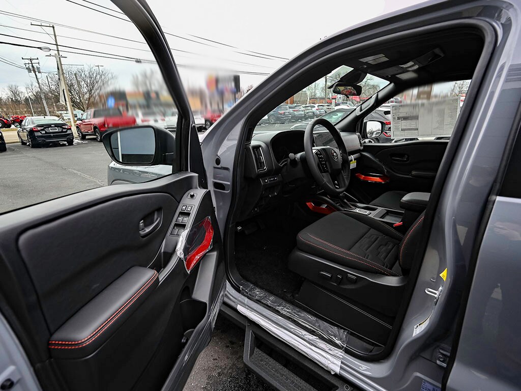 17" Painted Alloy Wheels, 3.692 Axle Ratio, 4-Wheel Disc Brakes, 6 Speakers, ABS brakes, Air Conditioning, Alloy wheels, AM/FM radio: SiriusXM, Anti-whiplash front head restraints, Auto High-beam Headlights, Automatic temperature control, Blind Spot Warning, Brake assist, Bumpers: body-color, Delay-off headlights, Driver door bin, Driver vanity mirror, Dual front impact airbags, Dual front side impact airbags, Electronic Stability Control, Electronic Tailgate Lock, Emergency communication system, Essentials Kit, Front anti-roll bar, Front Bucket Seats, Front Center Armrest, Front dual zone A/C, Front fog lights, Front reading lights, Front wheel independent suspension, Fully automatic headlights, Heated Front Bucket Seats, Heated front seats, Heated Steering Wheel, Heated steering wheel, Illuminated entry, Intelligent Around View Monitor (I-AVM), Knee airbag, Leather steering wheel, Low tire pressure warning, Mud Flaps, Occupant sensing airbag, Off-Road Style Step Rails, Overhead airbag, Overhead console, Panic alarm, Passenger door bin, Passenger vanity mirror, Power door mirrors, Power driver seat, Power passenger seat, Power steering, Power windows, Premium Paint, PRO Embroidered Premium Cloth Seat Trim, PRO-4X Carpeted Floor Mats, PRO-4X Convenience Package, Radio data system, Radio: SiriusXM/AM/FM/Auxiliary/USB Audio System, Rear anti-roll bar, Rear seat center armrest, Rear side impact airbag, Rear step bumper, Remote keyless entry, Security system, Speed control, Speed-sensing steering, Split folding rear seat, Steering wheel mounted audio controls, Tachometer, Telescoping steering wheel, Tilt steering wheel, Tow Package, Traction control, Trip computer, Variably intermittent wipers, Voltmeter, Wireless Apple CarPlay/Wireless Android Auto, Wireless Charging For Personal Devices. Boulder Gray Pearl 2026 Nissan Frontier PRO-4X 4WD 9-Speed Automatic with Overdrive 3.8L DI DOHC 24V V6
