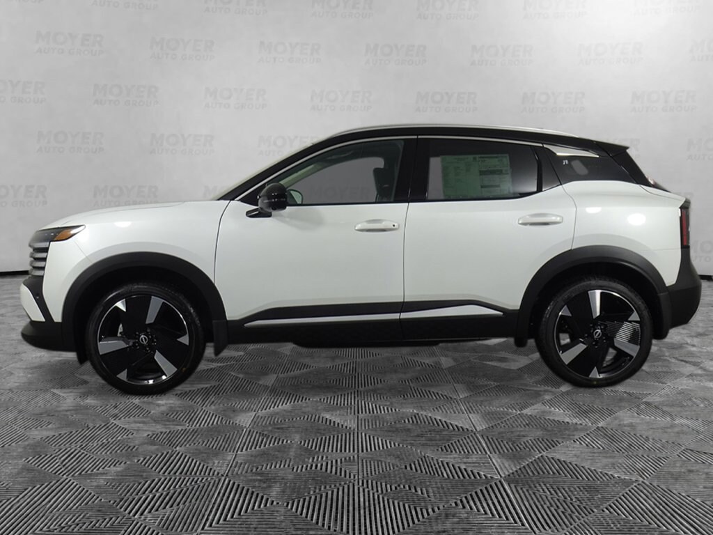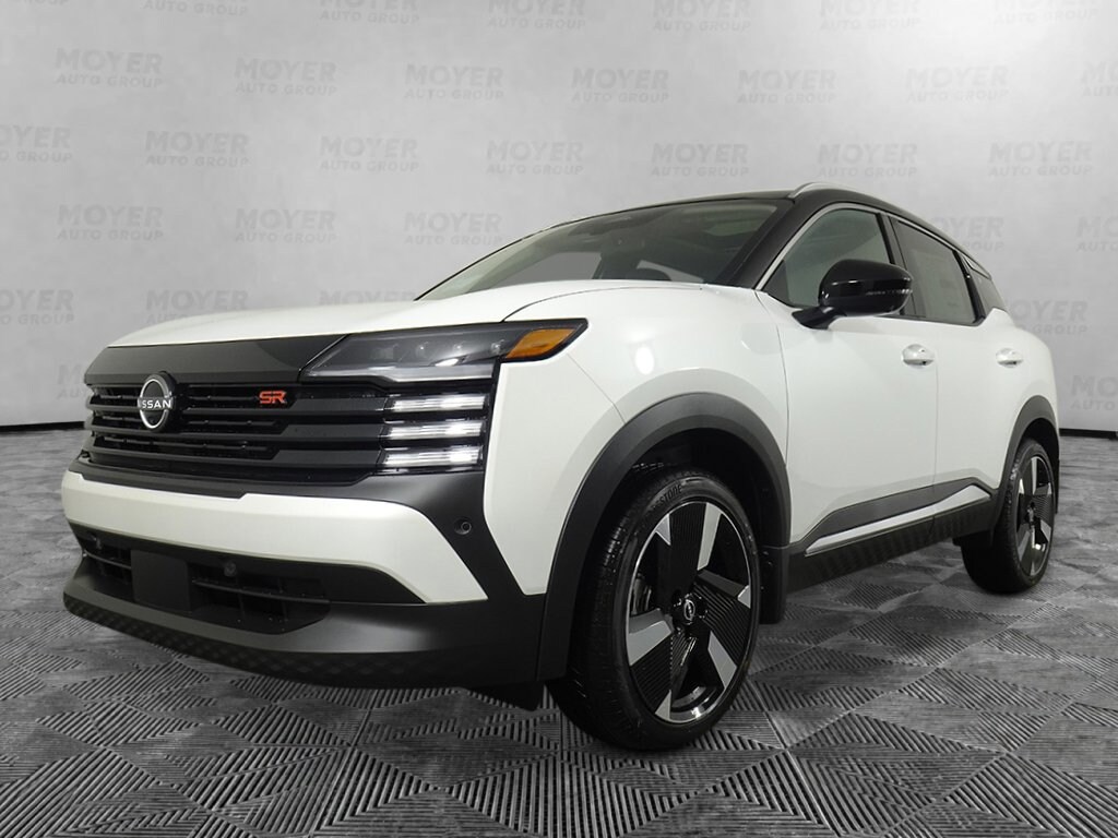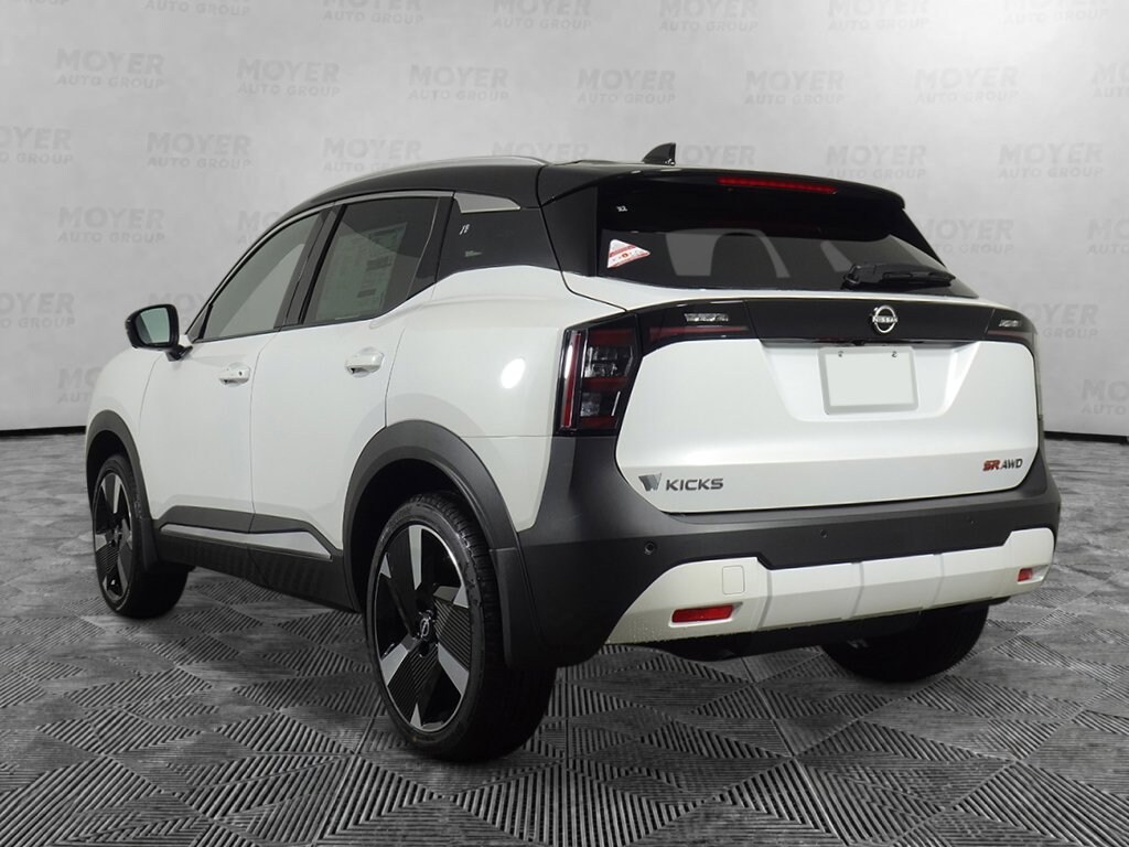 17" Alloy Wheels, 19" Alloy Wheels, 2-Tone Premium Paint, 4-Wheel Disc Brakes, 6 Speakers, ABS brakes, Air Conditioning, Alloy wheels, AM/FM radio, Auto High-beam Headlights, Automatic temperature control, Bose 10 -Speaker Audio, Brake assist, Bumpers: body-color, Carpeted Floor Mats, Cold Weather Package, Delay-off headlights, Driver door bin, Driver Seat-Mounted Supplemental Air Bag, Driver vanity mirror, Dual front impact airbags, Dual front side impact airbags, Electronic Stability Control, Emergency communication system: NissanConnect Services, Exterior Parking Camera Rear, Four wheel independent suspension, Front anti-roll bar, Front Bucket Seats, Front Center Armrest, Front reading lights, Fully automatic headlights, Garage door transmitter: myQ Connected Garage, Heated Front Seats, Heated Mirrors, Heated Steering Wheel, Illuminated Cargo Scuff Plate, Illuminated entry, Illuminated Kickplates, Illumination Package, Knee airbag, Leather Shift Knob, Leather steering wheel, Low tire pressure warning, NissanConnect featuring Apple CarPlay and Android Auto, Occupant sensing airbag, Outside temperature display, Overhead airbag, Overhead console, Panic alarm, Panoramic Moonroof, Passenger door bin, Passenger vanity mirror, Power door mirrors, Power steering, Power windows, Radio data system, Radio: AM/FM/SiriusXM Audio System, Rear anti-roll bar, Rear Floor Heater Ducts, Rear reading lights, Rear seat center armrest, Rear side impact airbag, Rear window defroster, Rear window wiper, Remote keyless entry, Security system, Speed control, Speed-sensing steering, Splash Guards, Split folding rear seat, Spoiler, Sport Leatherette with Cloth Insert Seat Trim, Sport steering wheel, SR Premium Package, Steering wheel mounted audio controls, Tachometer, Telescoping steering wheel, Tilt steering wheel, Traction control, Trip computer, Turn signal indicator mirrors, Variably intermittent wipers. Aspen White/Super Black 2026 Nissan Kicks SR AWD CVT with Xtronic 2.0L DOHC