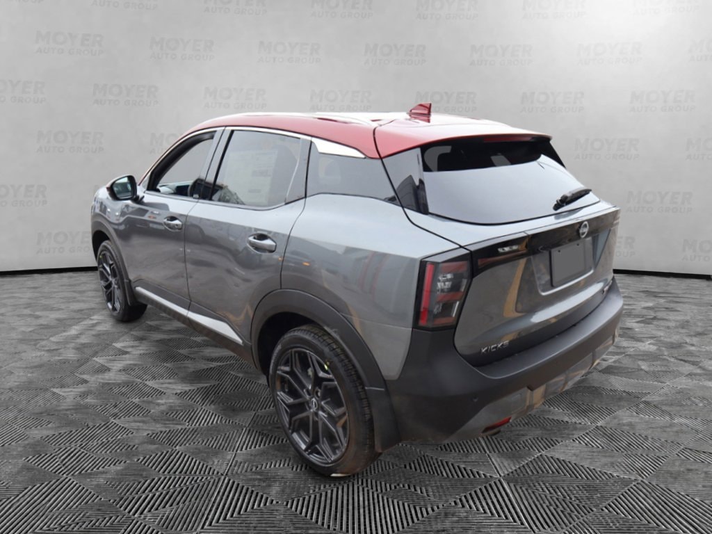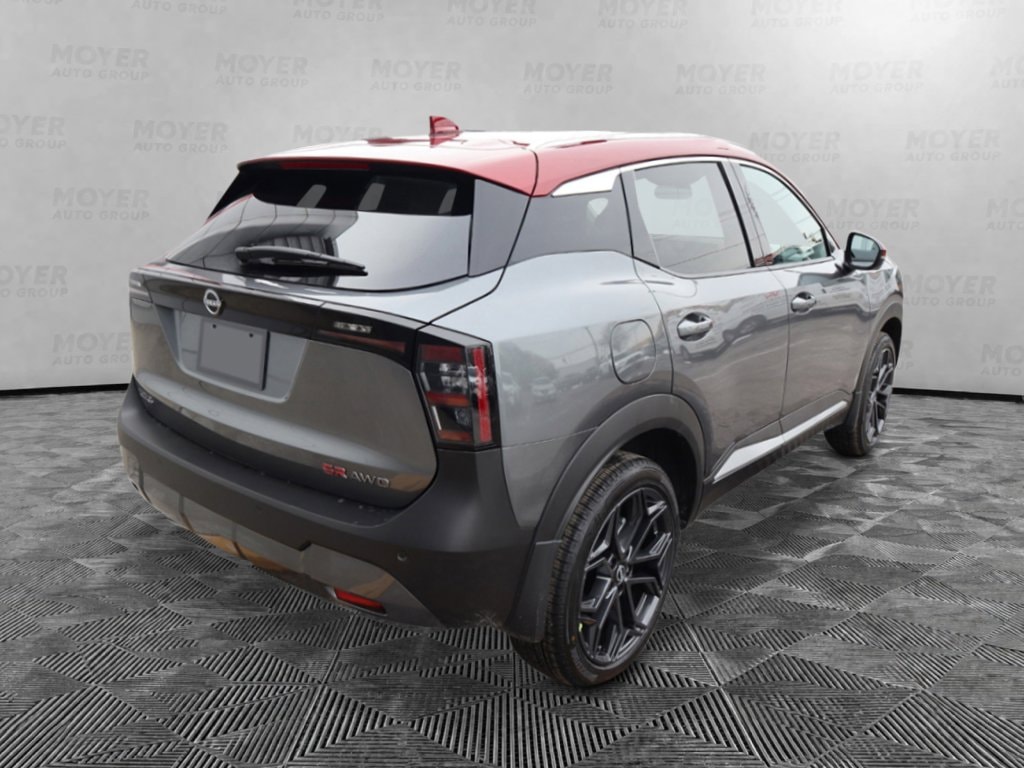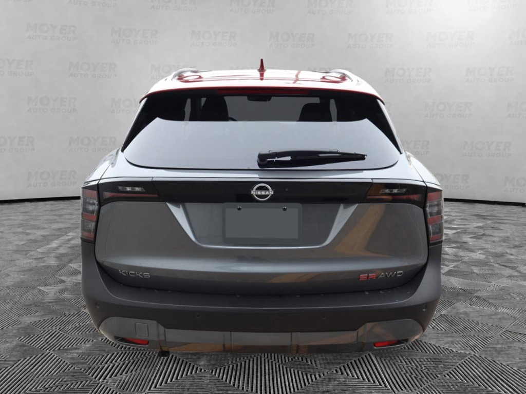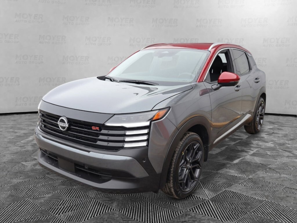 17" Alloy Wheels, 2-Tone Paint, 4-Wheel Disc Brakes, 6 Speakers, ABS brakes, Air Conditioning, Alloy wheels, AM/FM radio, Auto High-beam Headlights, Automatic temperature control, Brake assist, Bumpers: body-color, Carpeted Floor Mats, Delay-off headlights, Driver door bin, Driver vanity mirror, Dual front impact airbags, Dual front side impact airbags, Electronic Stability Control, Emergency communication system: NissanConnect Services, Exterior Parking Camera Rear, Four wheel independent suspension, Front anti-roll bar, Front Bucket Seats, Front Center Armrest, Front reading lights, Fully automatic headlights, Garage door transmitter: myQ Connected Garage, Illuminated entry, Knee airbag, Leather Shift Knob, Leather steering wheel, Low tire pressure warning, NissanConnect featuring Apple CarPlay and Android Auto, Occupant sensing airbag, Outside temperature display, Overhead airbag, Overhead console, Panic alarm, Passenger door bin, Passenger vanity mirror, Power door mirrors, Power steering, Power windows, Radio data system, Radio: AM/FM/SiriusXM Audio System, Rear anti-roll bar, Rear reading lights, Rear seat center armrest, Rear side impact airbag, Rear window defroster, Rear window wiper, Remote keyless entry, Security system, Speed control, Speed-sensing steering, Splash Guards, Split folding rear seat, Spoiler, Sport Leatherette with Cloth Insert Seat Trim, Sport steering wheel, Steering wheel mounted audio controls, Tachometer, Telescoping steering wheel, Tilt steering wheel, Traction control, Trip computer, Turn signal indicator mirrors, Variably intermittent wipers, Wheels: 19" Dark Gray Alloy. Gun Metallic/Scarlet Ember Tintcoat 2026 Nissan Kicks SR AWD CVT with Xtronic 2.0L DOHC