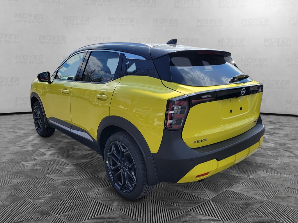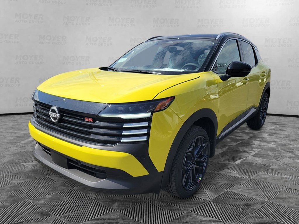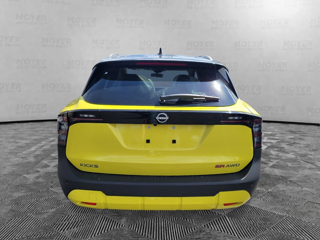 17" Alloy Wheels, 2-Tone Premium Paint, 4-Wheel Disc Brakes, 6 Speakers, ABS brakes, Air Conditioning, Alloy wheels, AM/FM radio, Auto High-beam Headlights, Automatic temperature control, Bose 10 -Speaker Audio, Brake assist, Bumpers: body-color, Carpeted Floor Mats, Cold Weather Package, Delay-off headlights, Driver door bin, Driver Seat-Mounted Supplemental Air Bag, Driver vanity mirror, Dual front impact airbags, Dual front side impact airbags, Electronic Stability Control, Emergency communication system: NissanConnect Services, Exterior Parking Camera Rear, Four wheel independent suspension, Front anti-roll bar, Front Bucket Seats, Front Center Armrest, Front reading lights, Fully automatic headlights, Garage door transmitter: myQ Connected Garage, Heated Front Seats, Heated Mirrors, Heated Steering Wheel, Illuminated Cargo Scuff Plate, Illuminated entry, Illuminated Kickplates, Illumination Package, Knee airbag, Leather Shift Knob, Leather steering wheel, Low tire pressure warning, NissanConnect featuring Apple CarPlay and Android Auto, Occupant sensing airbag, Outside temperature display, Overhead airbag, Overhead console, Panic alarm, Panoramic Moonroof, Passenger door bin, Passenger vanity mirror, Power door mirrors, Power steering, Power windows, Radio data system, Radio: AM/FM/SiriusXM Audio System, Rear anti-roll bar, Rear Floor Heater Ducts, Rear reading lights, Rear seat center armrest, Rear side impact airbag, Rear window defroster, Rear window wiper, Remote keyless entry, Security system, Speed control, Speed-sensing steering, Splash Guards, Split folding rear seat, Spoiler, Sport Leatherette with Cloth Insert Seat Trim, Sport steering wheel, SR Premium Package, Steering wheel mounted audio controls, Tachometer, Telescoping steering wheel, Tilt steering wheel, Traction control, Trip computer, Turn signal indicator mirrors, Variably intermittent wipers, Wheels: 19" Dark Gray Alloy. Yuzu Yellow/Super Black 2026 Nissan Kicks SR AWD CVT with Xtronic 2.0L DOHC